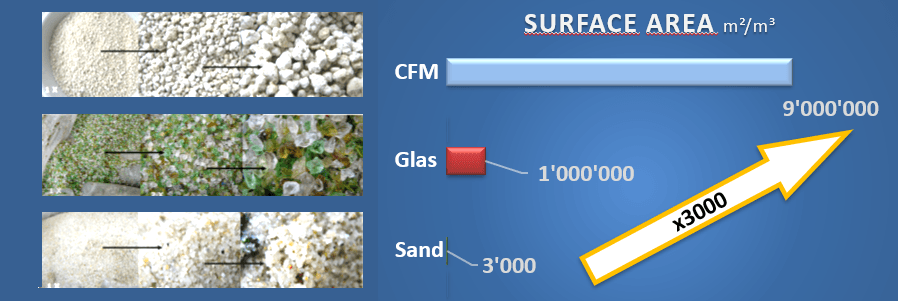 Durch das im Vergleich zu anderen Filtermedien wie Sand oder Glas deutlich geringere Schüttgewicht wird die Handhabung für den Anwender erleichtert, Energie- und Transportkosten sinken. Nach dem Gebrauch lässt sich das neue Filtermaterial beispielsweise zur Bodenverbesserung im Garten einsetzen, da es den Boden auflockert und eine hohe Wasseraufnahmekapazität besitzt. Das Filtermaterial kann aber auch einfach über den Hausmüll entsorgt werden, da sich aufgrund der Bioresistenz des Materials keine Bakterien oder Biofilme ansiedeln.
