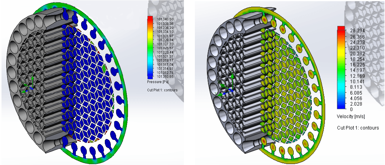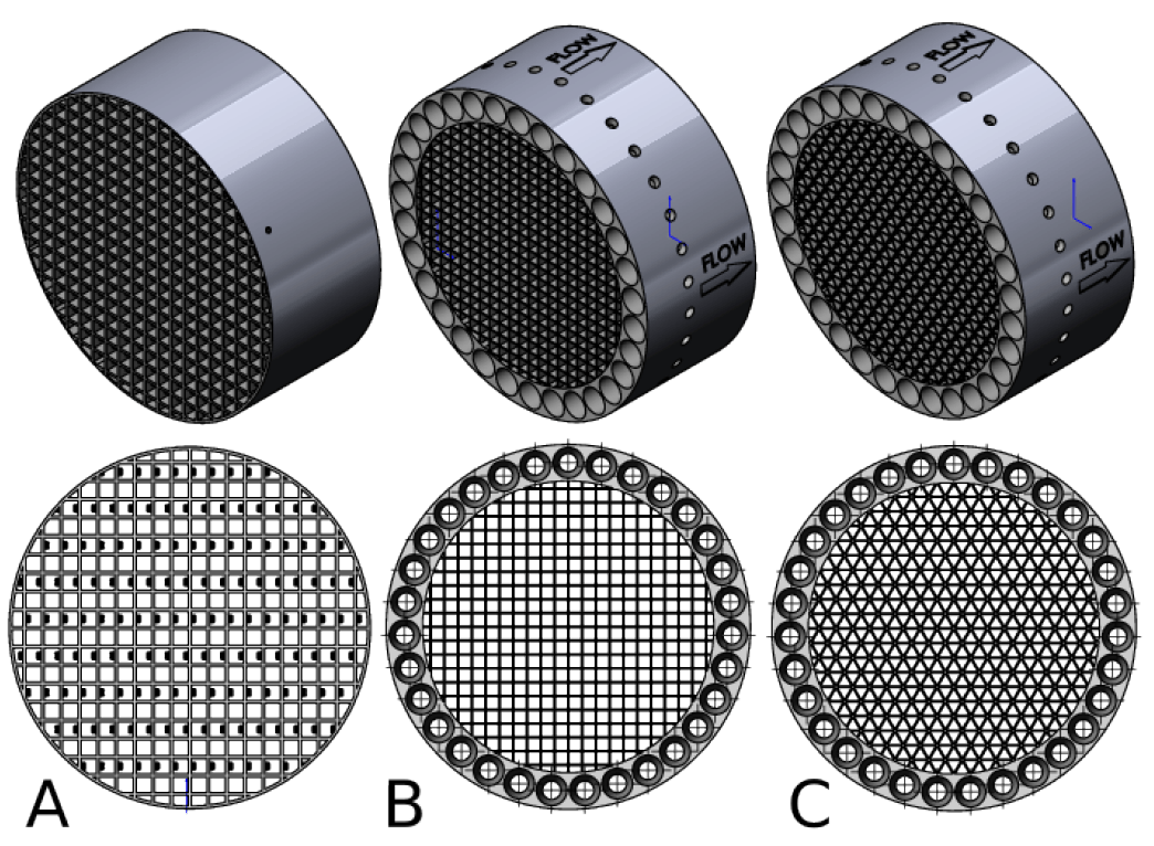 Für die Messungen an einer Kleinfeuerungsanlage wurden zwei aus Aluminiumlegierung gedruckte Monolithträger oxidiert, beschichtet, in das vorhandene Abgassystem des Ofens installiert und bei einer Verfeuerung vom trockenen Buchenholz getestet.